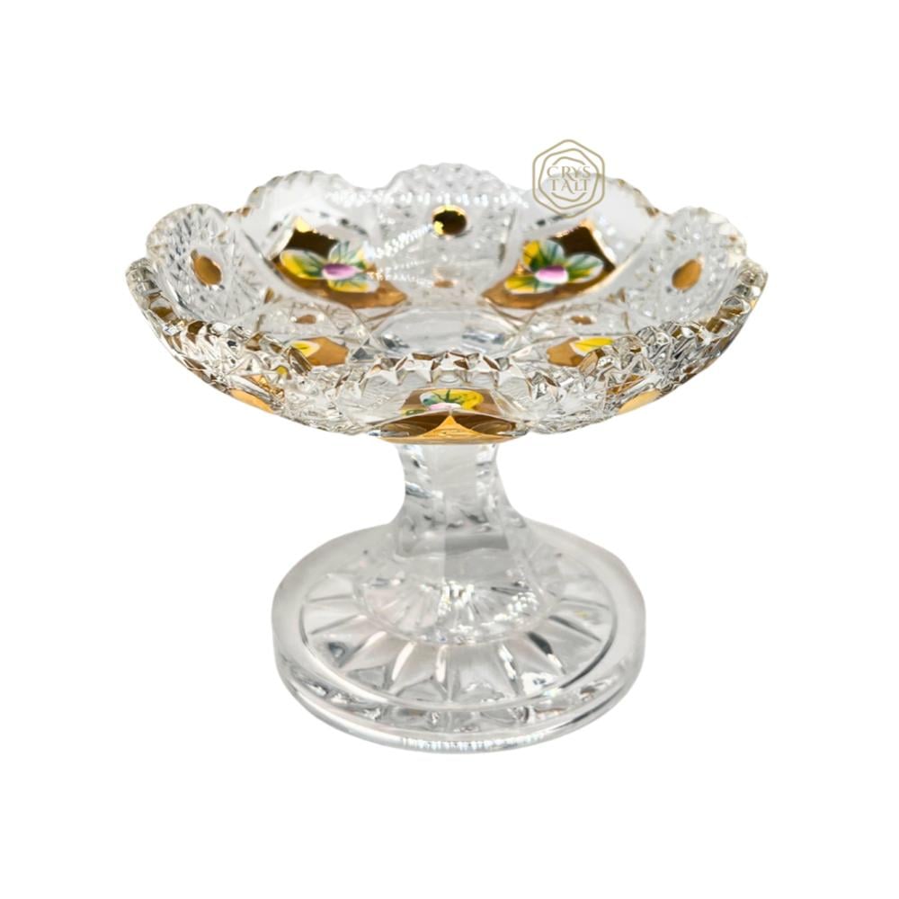 فازة كريستال بوهيمي ذهبية بقاعدة مرتفعة