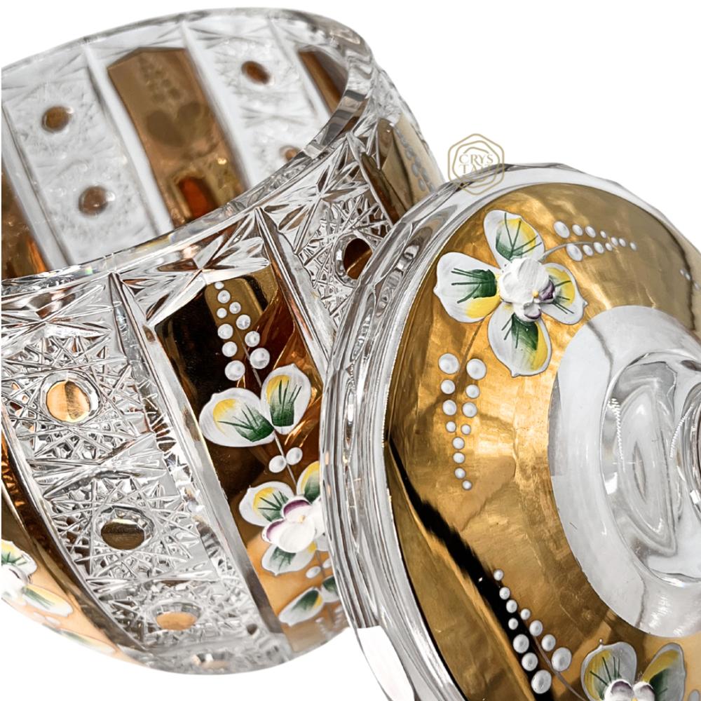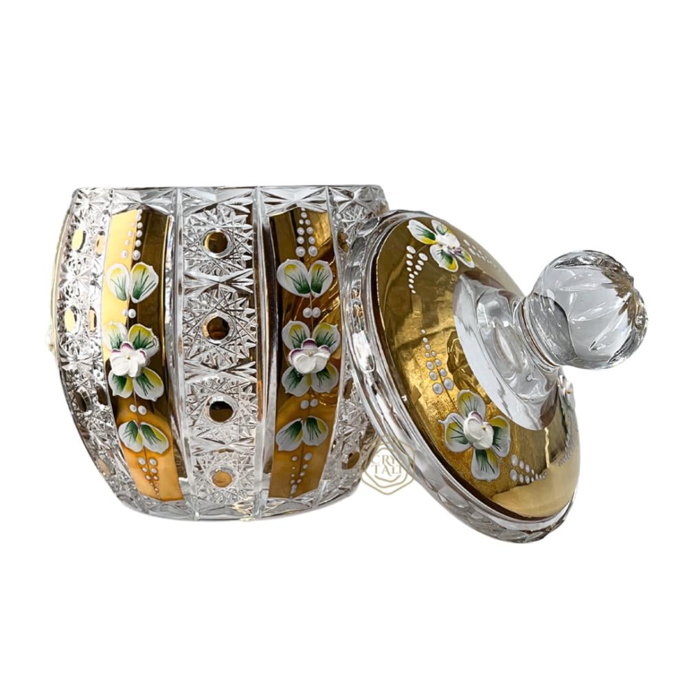 فازة كريستال بوهيمي ذهبية مع غطاء ( تصميم برميل ) | حجم وسط