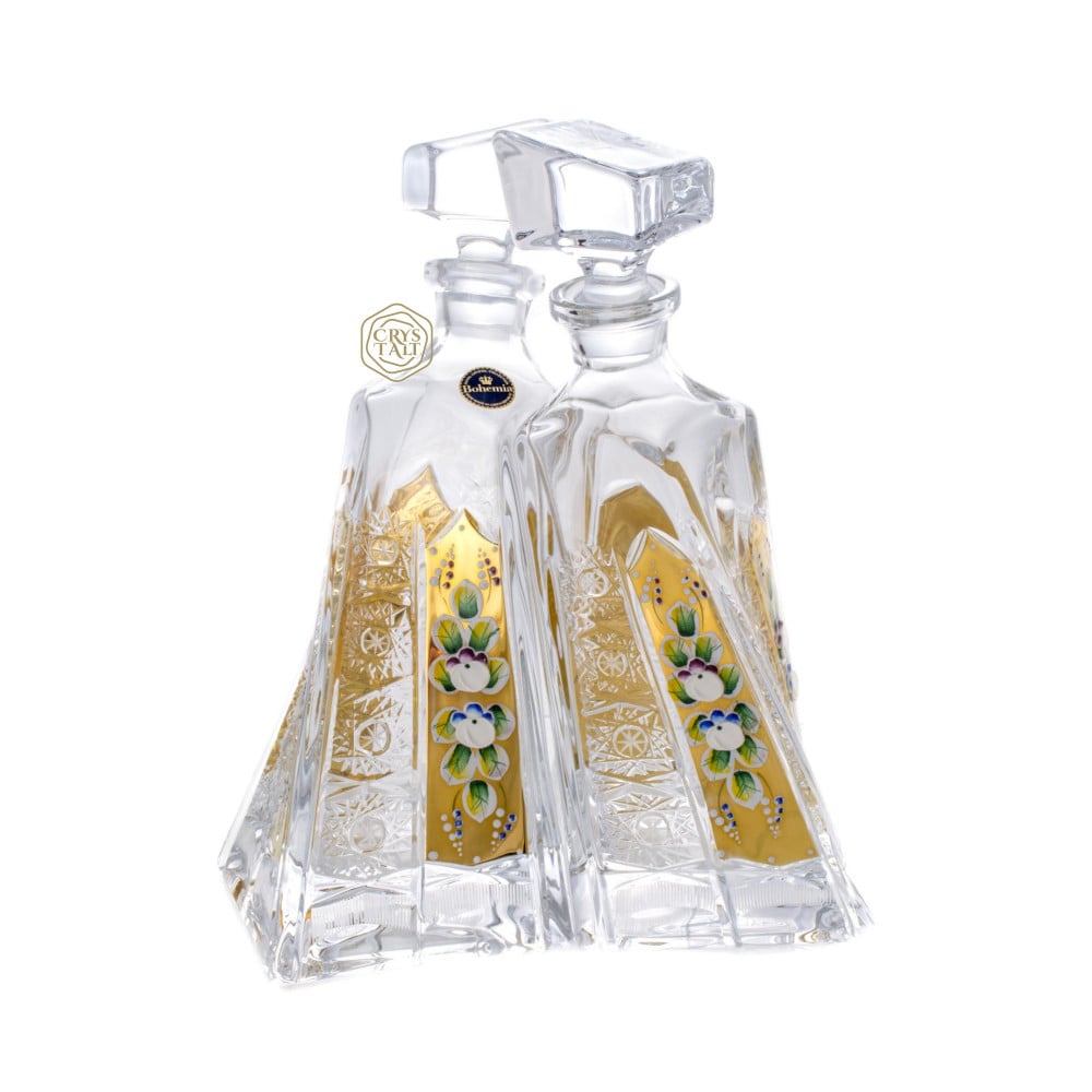 عبوة توأم ( قطعتين ) مع تذهيب ورسم من كريستال بوهيمي صناعة يدوية من التشيك