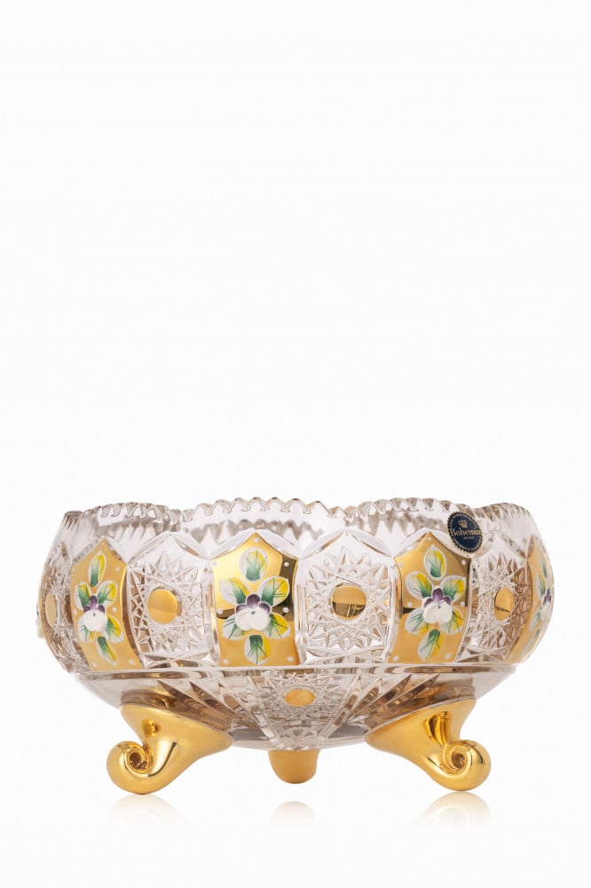 فازة كريستال بوهيمي ذهبية بقاعدة مرتفعة
