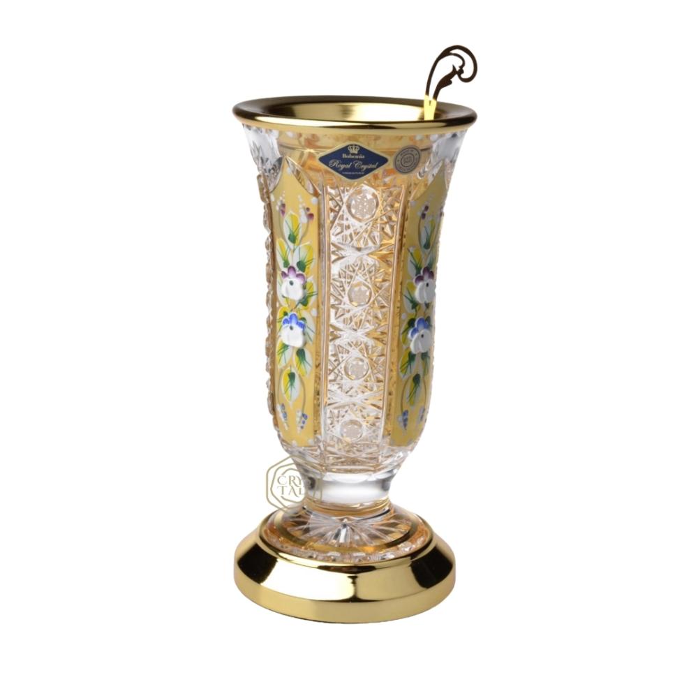 مزهرية كأس كريستال بوهيمي مع تذهيب ورسم...
