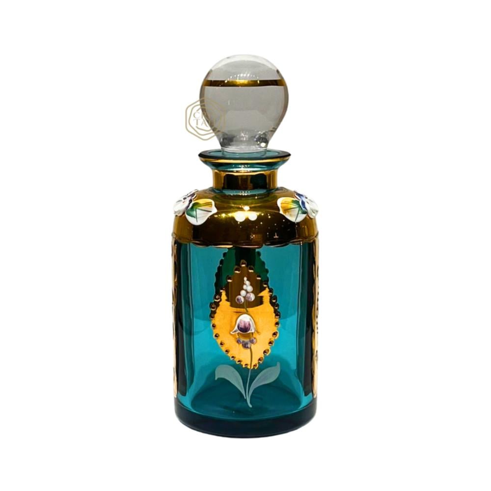 عبوة قديمة لون تيفاني أزرق مع زخرفة ذهبية ورسم يدوي حجم صغير | صناعة تشيكية