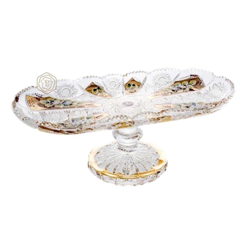 ستاند حلى بيضاوي فاخر من كريستال بوهيمي مع تذهيب ورسم يدوي مع قاعدة | صناعة تشيكية
