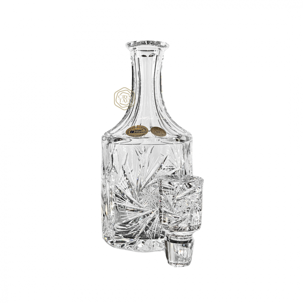 عبوة كريستال بوهيمي شفافة نقش حديث | صناعة تشيكية | حجم كبير 750 مل