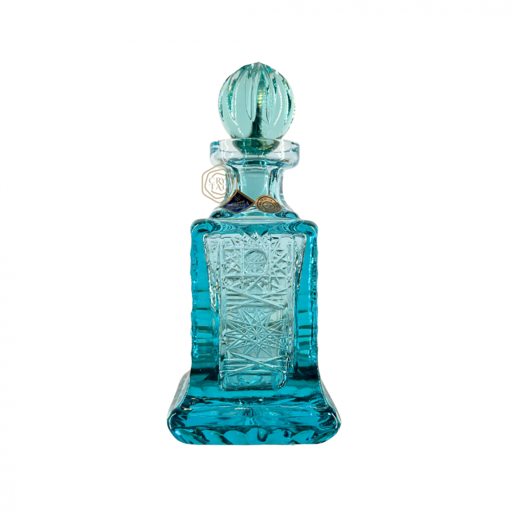 عبوة فاخرة من كريستال بوهيمي تصميم مربع بلون تيفاني | صناعة يدوية من التشيك | حجم صغير